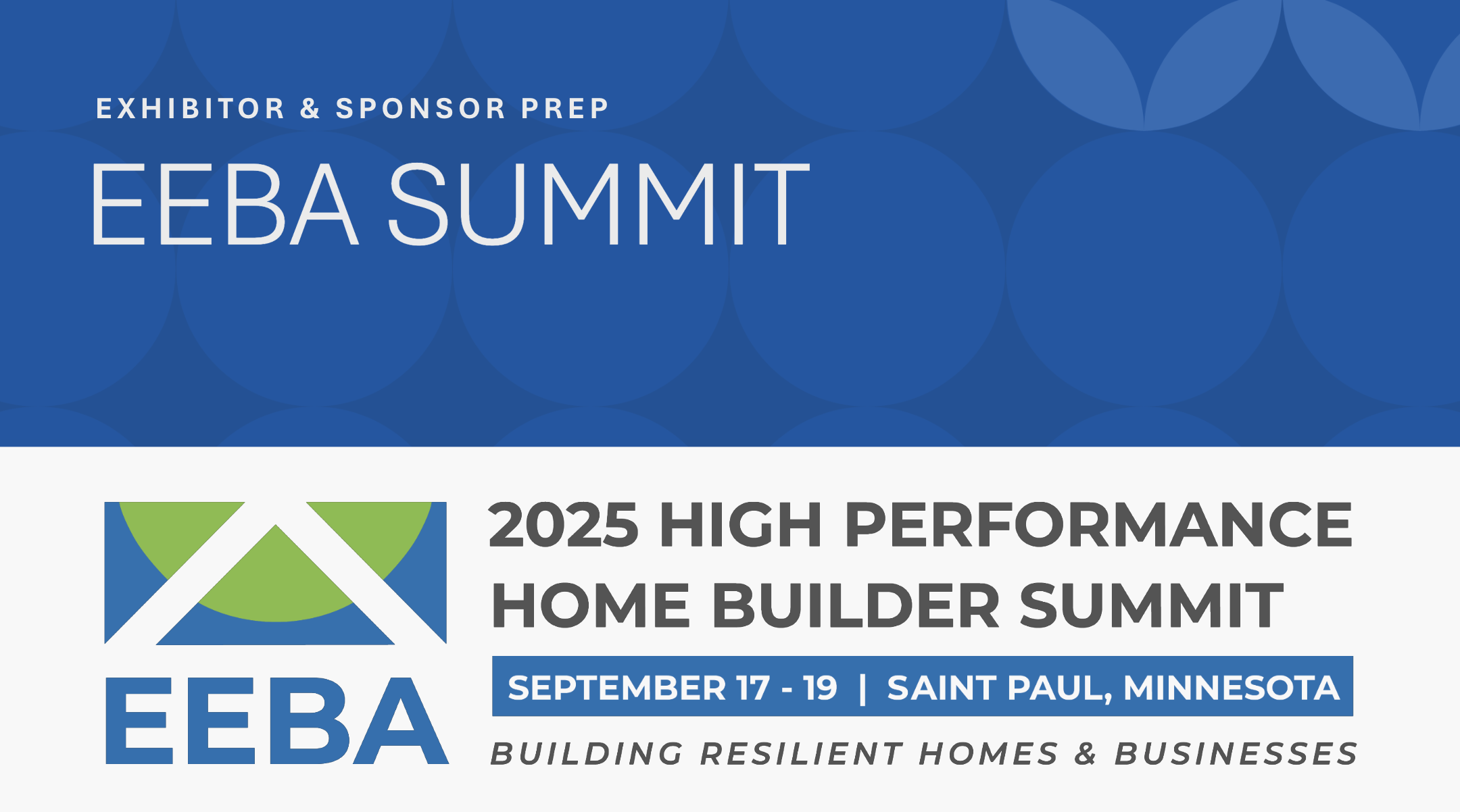 High Performance Home Builder Summit September 16-18, 2026 - Saint Paul, MNJoin EEBA on September 16-18, 2026 in Saint Paul, MN for a High Performance Home Builder Summit focused on providing the tools and networking that builders, raters, analysts, and architects need to take high performance, healthy, resilient homes to new heights.
