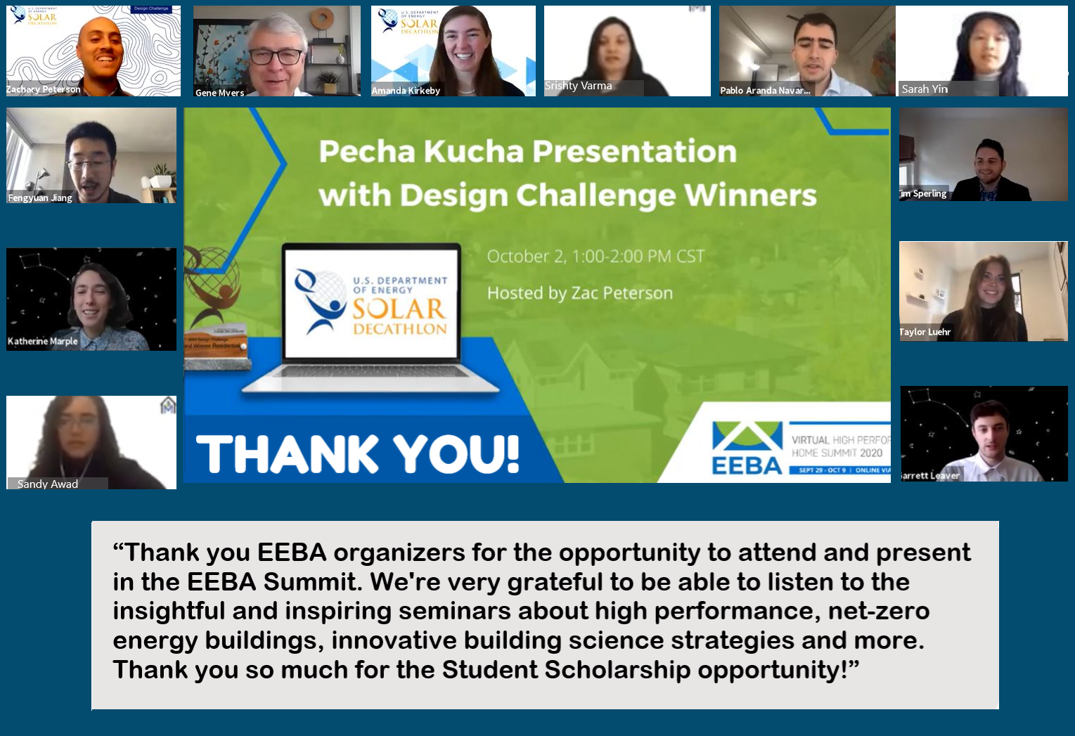 The EEBA NextGen scholarship fund successfully launched in 2018 allowing students from across the U.S. and Canada to attend the High Performance Home Summit. The student teams were given the opportunity to present their projects to Summit attendees and also attended many networking events where they made valuable connections with many industry professionals.