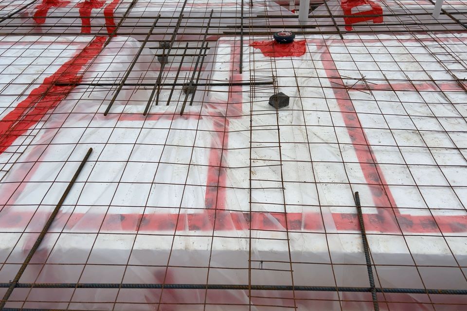 To ensure a comfortable, efficient envelope, the building is wrapped in Henry Blueskin with R21 Johns Mansfield ThermaBoard continuous insulation (ci) and R20 blown cellulose in cavities. Supply chain issues meant pivoting from the originally specified Rockwool ci but the team resisted plastic based products to align with their low embodied carbon goals and waited for the ThermaBoard product to become available. R80 blown cellulose in attics lays on top of the Intello Plus air barrier that’s taped and foamed at seams and penetrations. Due to their small footprint, the buildings required extensive foundation insulation including R10 on the footings interior and exterior walls and R24 – R40 under the slab and at haunches.