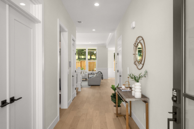 Framing is another area where innovation shines. We used Builders FirstSource Ready-Frame technology, a precision-cut, pre-assembled framing system that reduces on-site waste, speeds up construction, and enhances structural accuracy. Advanced framing techniques—such as 24” on-center spacing, open headers, and raised heel trusses—further reduce thermal bridging and improve wall performance, achieving R-23 wall insulation with a robust and efficient envelope.