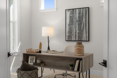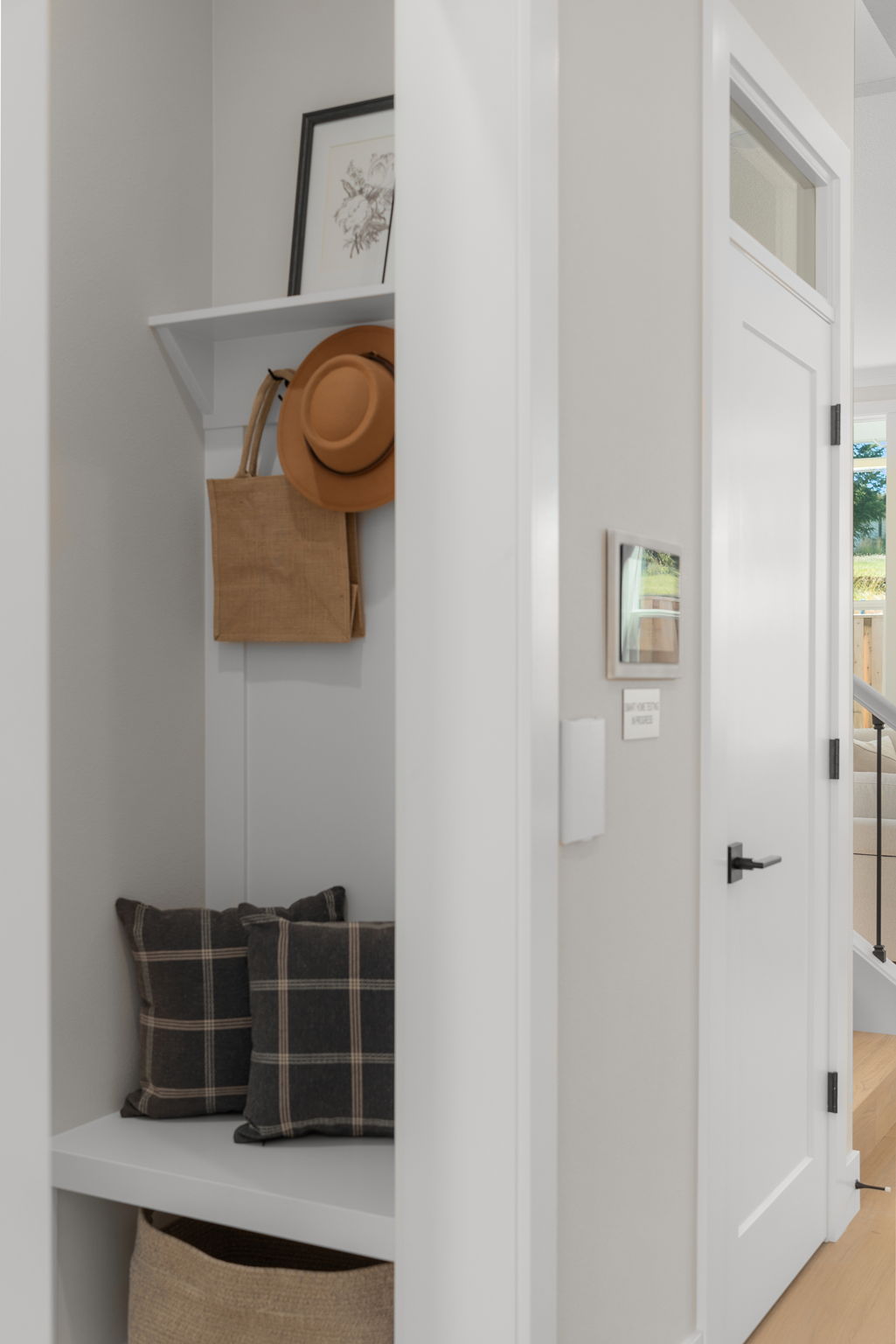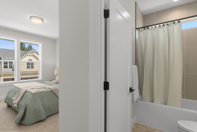 The HVAC system also pushes the envelope with a Mitsubishi Hyper-Heat heat pump, capable of delivering high performance even in cold climates. With ducts and air handler entirely within conditioned space, performance is maximized, and energy loss minimized. Balanced ventilation is provided by a Broan AI Series ERV, which is programmed to meet ASHRAE 62.2 standards and operates independently to ensure consistent indoor air quality. Smart controls, including the Mitsubishi Kumo Cloud Wi-Fi thermostat, ensure residents have remote control over comfort and efficiency.