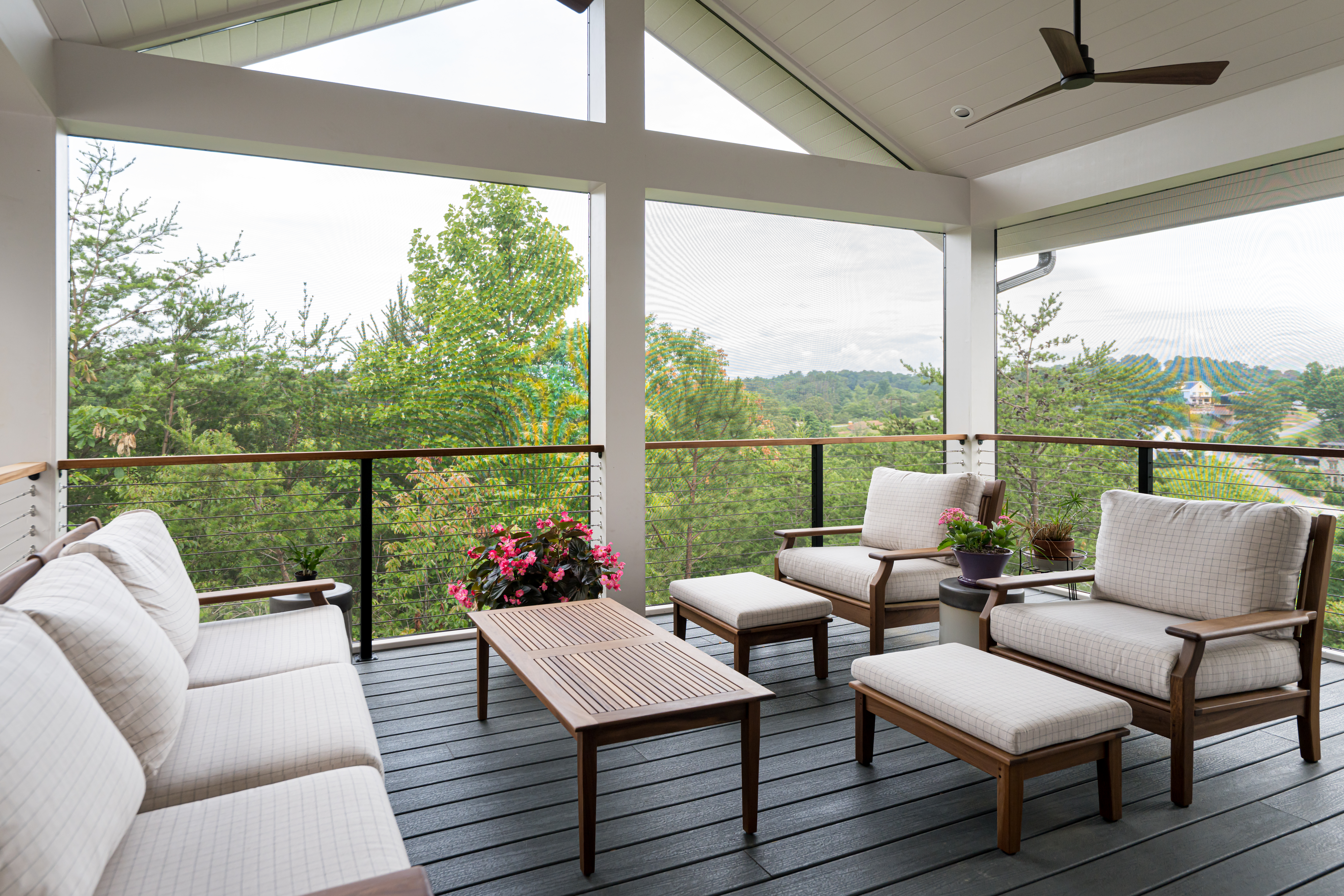 A screened-in porch that is open to the mountain breeze - perfect for morning coffee, music, and watching the area wildlife.