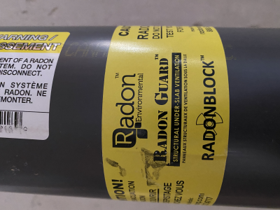 - Active radon mitigation system with quiet, efficient fan.